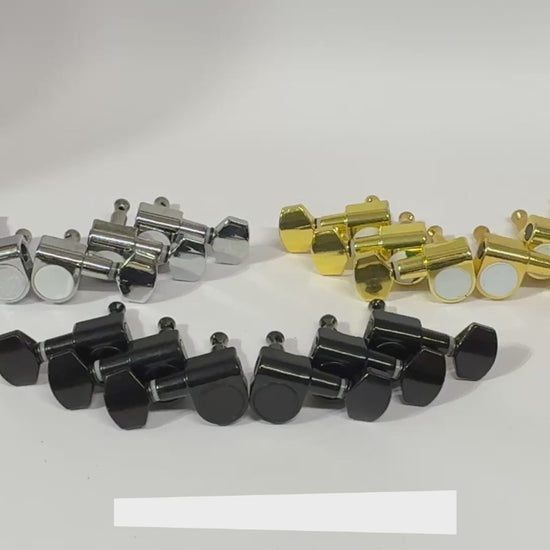 Upgrade your guitar. These machine heads lock the string in place for maximum tuning stability. Finished in chrome, black, gold and ideal for three right three left machine head configurations.