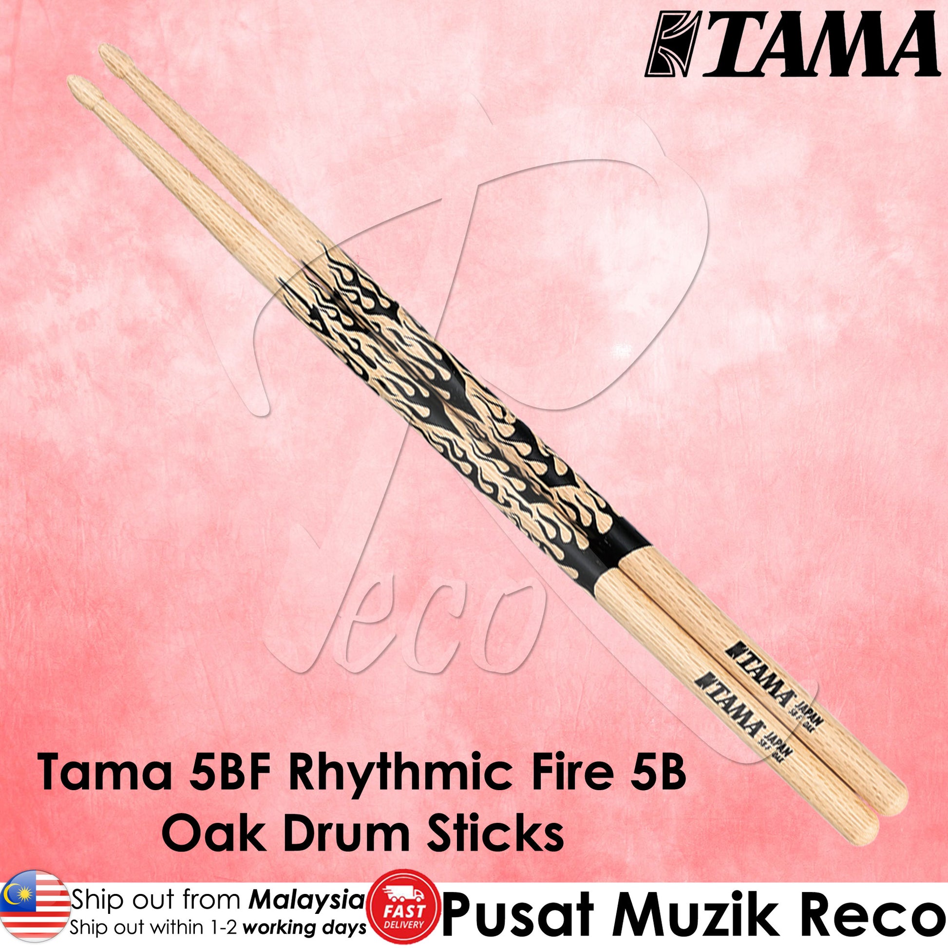Tama 5BF Drum Sticks with Japanese Oak Material and Rhythmic Fire Design